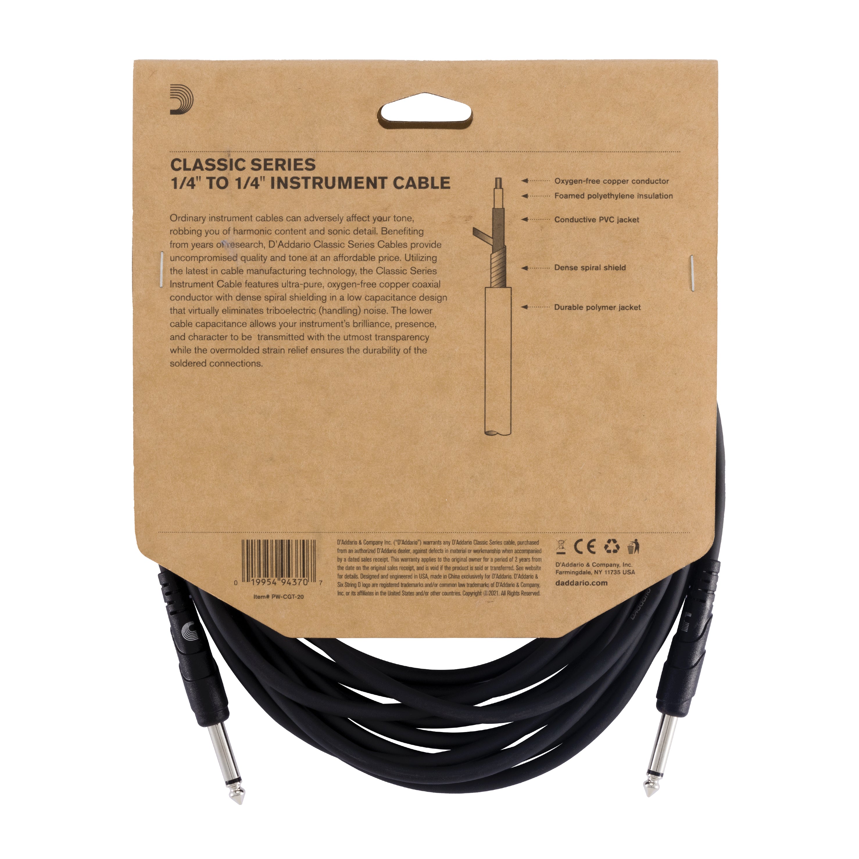Ordinary instrument cables can adversely affect your tone, robbing you of harmonic content and sonic detail. Benefiting from years of research, premium D’Addario Classic Series Cables provide uncompromised quality and tone at an affordable price. Utilizing the latest in high-quality instrument cable manufacturing technology, the Classic Series Instrument Cable features ultra-pure, oxygen-free copper coaxial conductor with dense spiral shielding in a low capacitance design that virtually eliminates triboelectric (handling) noise. The lower cable capacitance allows your instrument’s brilliance, presence, and character to be transmitted with the utmost transparency while the overmolded strain relief ensures the durability of the soldered connections.