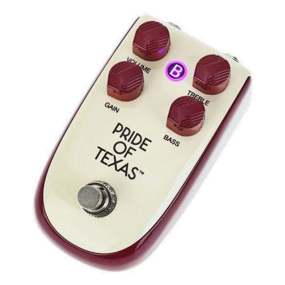 The Pride of Texas is inspired by and designed to capture the tone of one of the greatest  texas blues players ever. It fattens up the signal without loss of clarity and pushes your single coils or humbuckers. It will give you a variety of gain settings, from low to heavy overdrive, and has plenty of boost to cut through the mix.