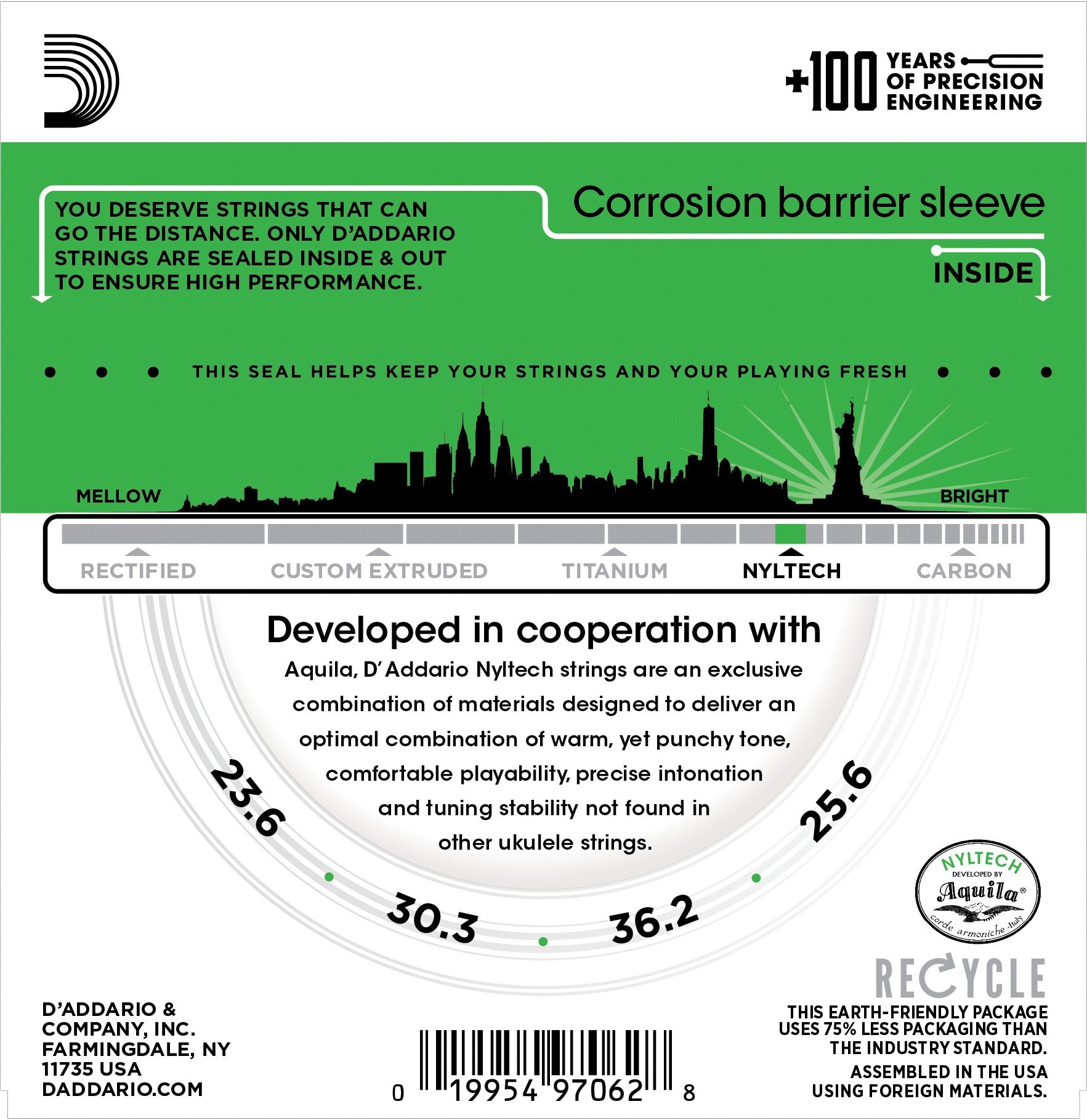 Developed in cooperation with Aquila, D'Addario Nyltech strings are an exclusive combination of materials designed to deliver an optimal combination of warm, yet punchy tone, comfortable playability, precise intonation and tuning stability not found in other ukulele strings.