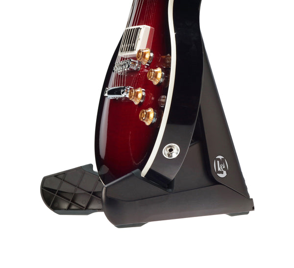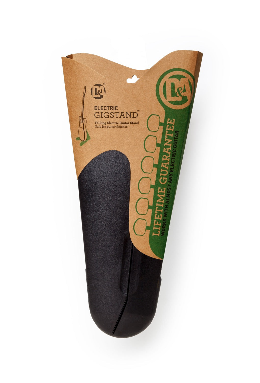 The D&A Gigstand Electric collapses in two simple steps and can be carried in a gig bag or even the back pocket of your jeans.