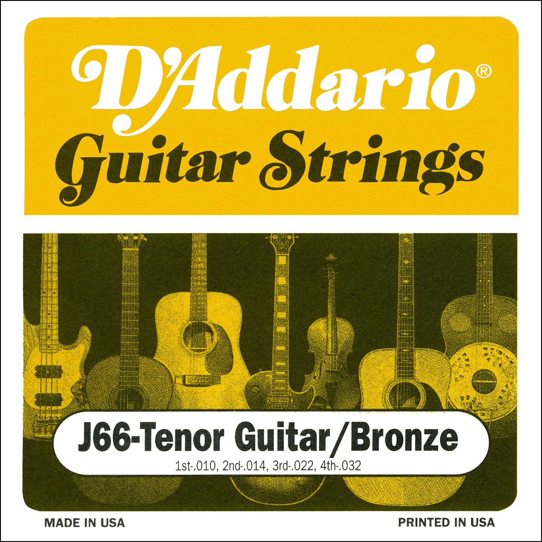 D'Addario Tenor guitar strings are made specifically for steel string Tenor Guitars. J66 Tenor Guitar strings are made from Plain Steel and 80/20 Bronze wound strings which provide bright, projecting acoustic tone.