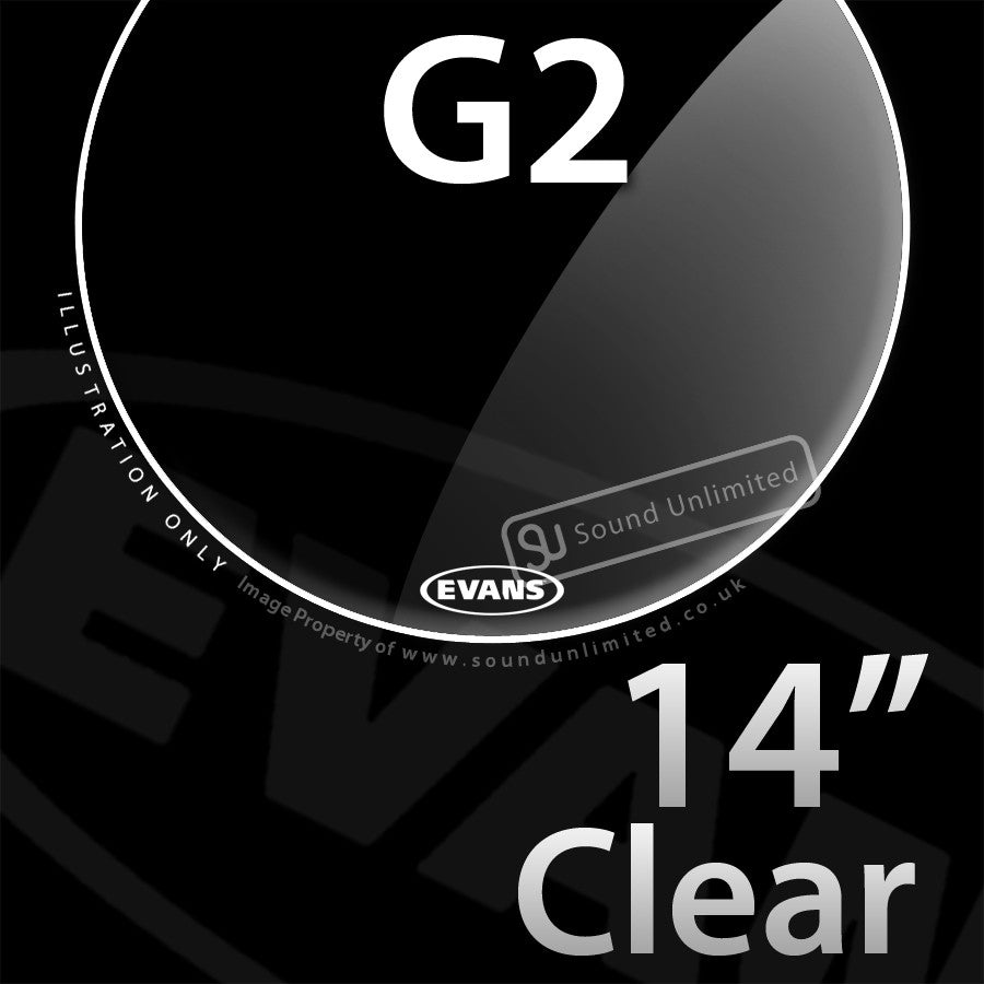 Evans 14" clear G2 two-ply drum head is designed to perform with an ideal balance of depth, sustain, attack and durability.